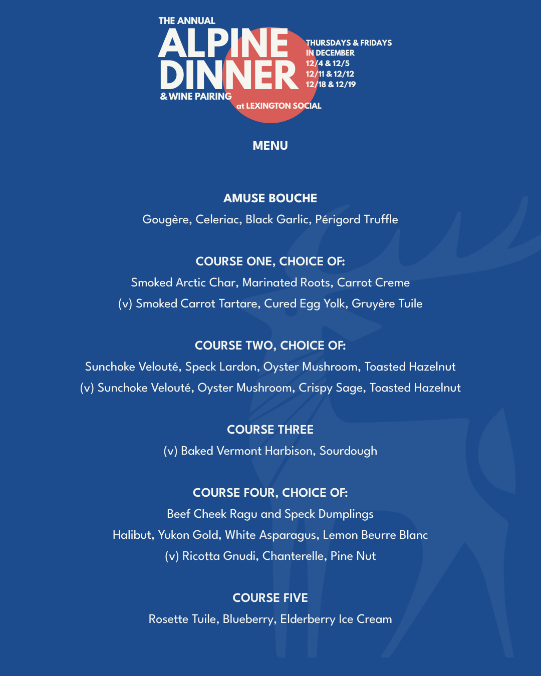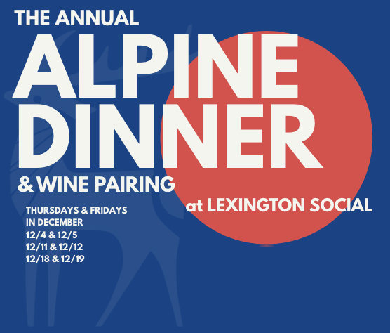 MAKE A RESERVATION (DEC 4 & 5) MAKE A RESERVATION (DEC 11 & 12) MAKE A RESERVATION (DEC 18 & 19) Follow us on Instagram at @lexingtonsocialeats